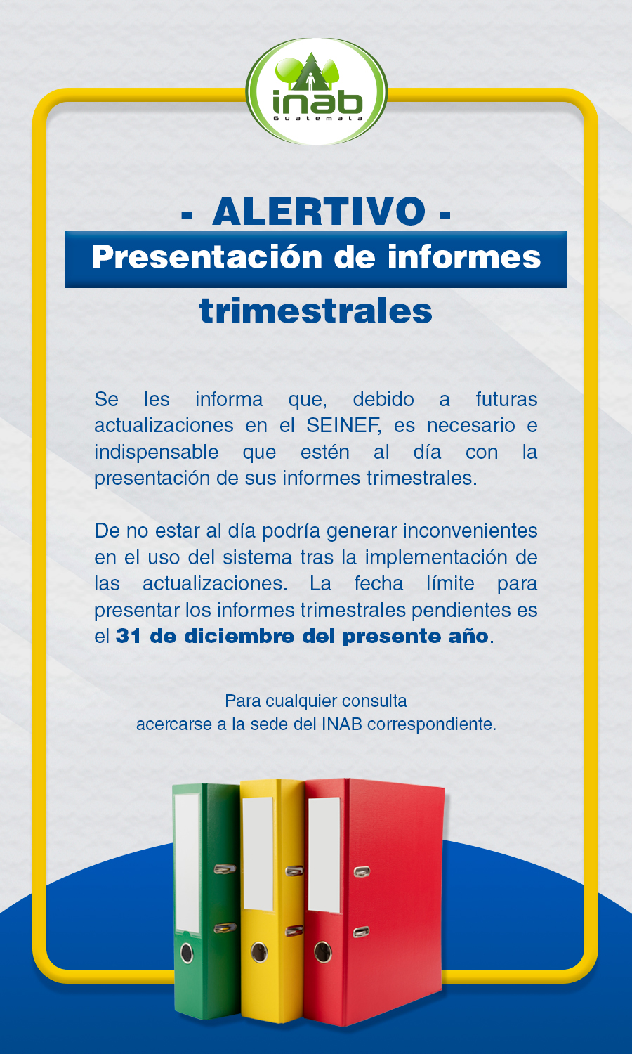 Luego de llenar este informe debe de presentarlo en la oficina de INAB de su