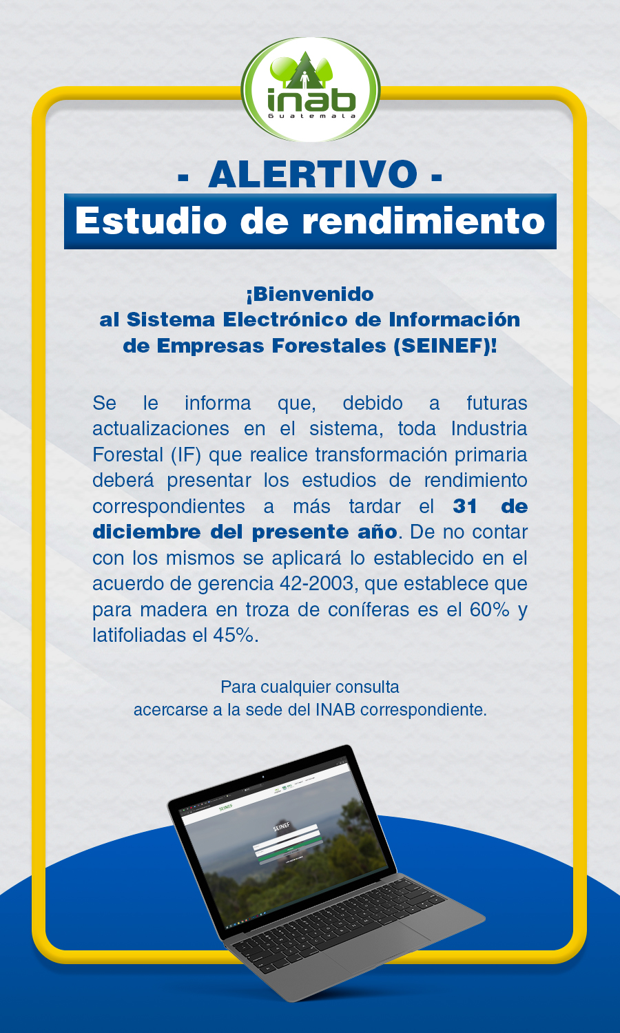 información deberá ser de acuerdo al último informe presentado al INAB.